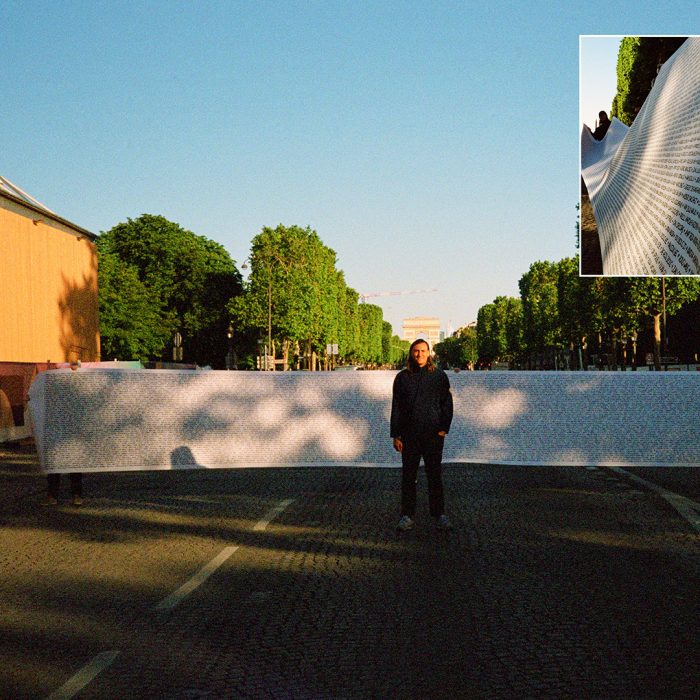 Vivant à Saint-Ouen en Seine Saint-Denis à 500 mètres du futur village olympique en construction à l’époque, et marqué des souvenirs d’enfance de réveils nocturne pour regarder le BMX féminin en 2008, l’idée prend forme : représenter à la main l’histoire des Jeux Olympiques à travers les noms de ses médaillés.