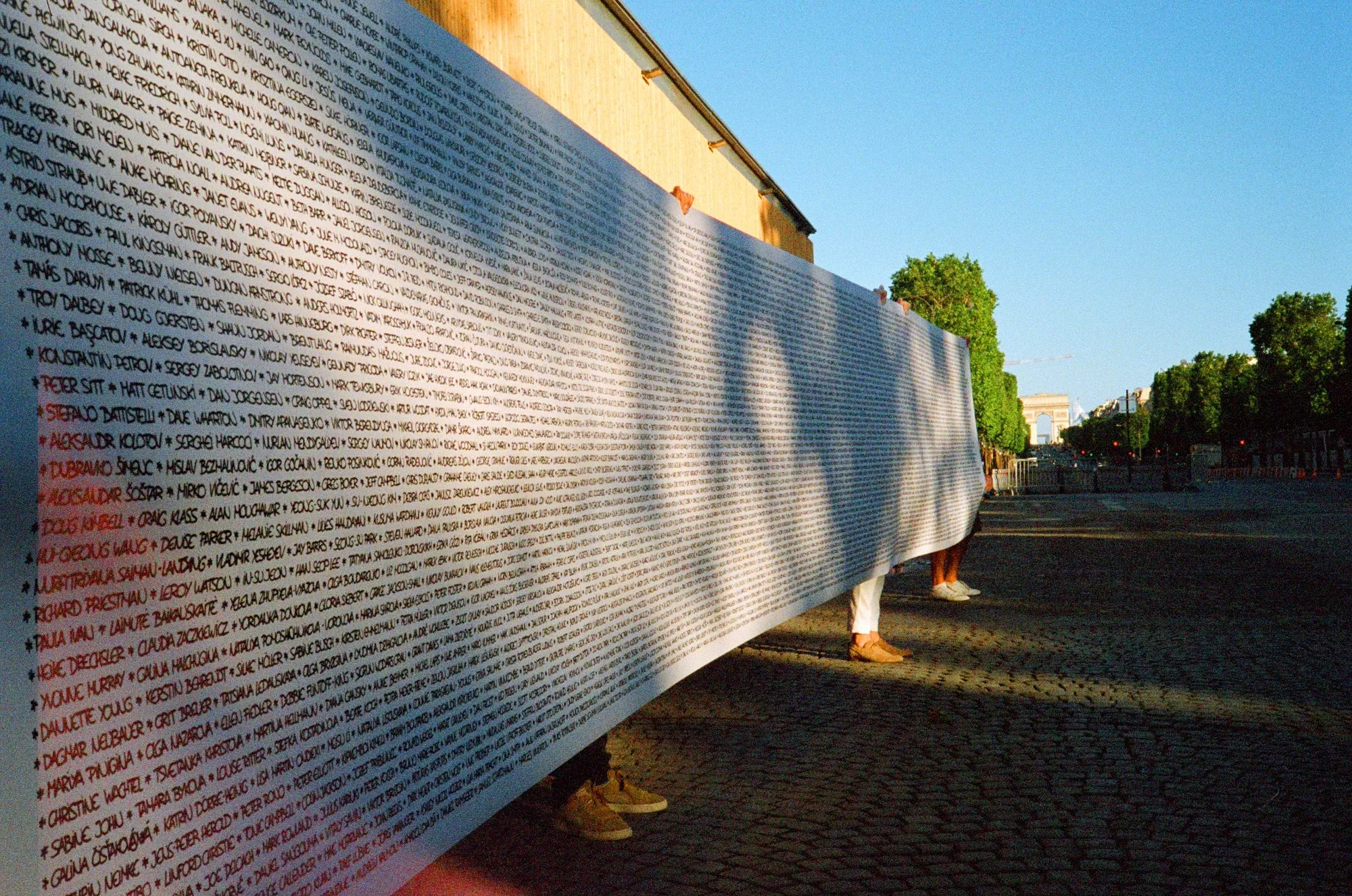 Un tirage reproduisant la fresque *AMATEURS* numéroté à 500 exemplaires avec les noms des 1 496 nouveaux médaillés olympiques et 1 537 médaillés paralympiques des Jeux de Paris 2024. 3 formats disponibles.